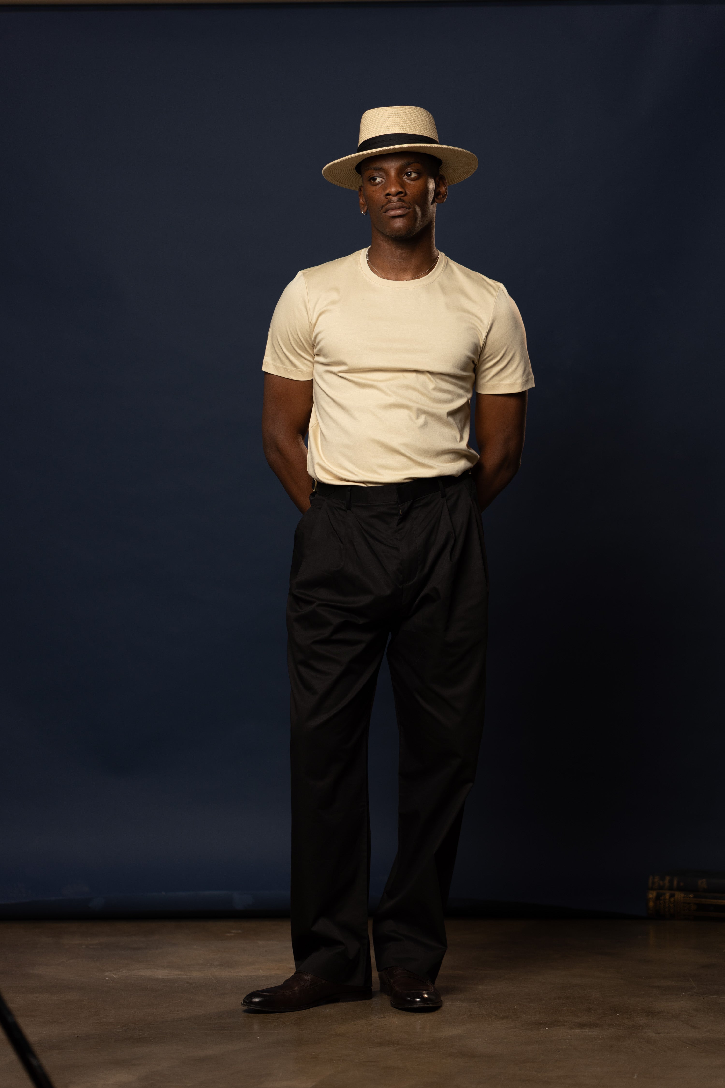 Take a size up if you are unsure between two sizes, otherwise take your regular fit for our mercerised tees, they have a relaxed tailored fit.